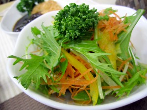 お好みのドレッシングでお召し上がりください。ポン酢も意外と合いますよ。